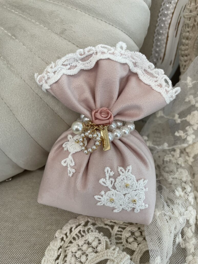 Dieses liebevoll gestaltete Rosenduft Säckli vereint zarte Eleganz mit einem Hauch von Vintage-Romantik. Gefertigt aus weichem Stoff in edlem Altrosa, verziert mit feiner Spitze, filigranen Blütenapplikationen und einer dekorativen Perlenbrosche, ist dieses Duftbeutelchen ein echter Blickfang.