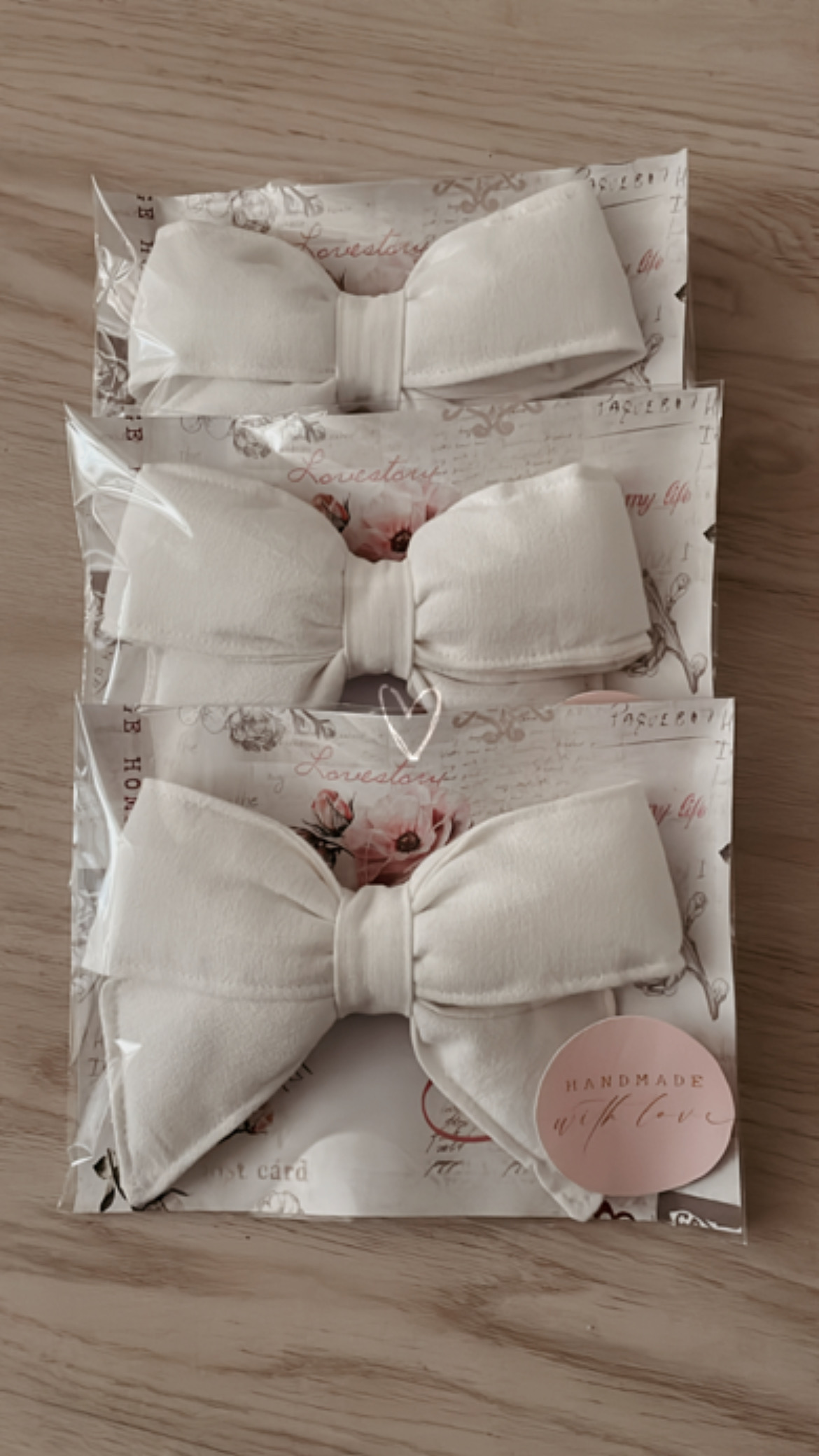 Die Stoffschleife hat ein transparentes Band zum aufhängen.