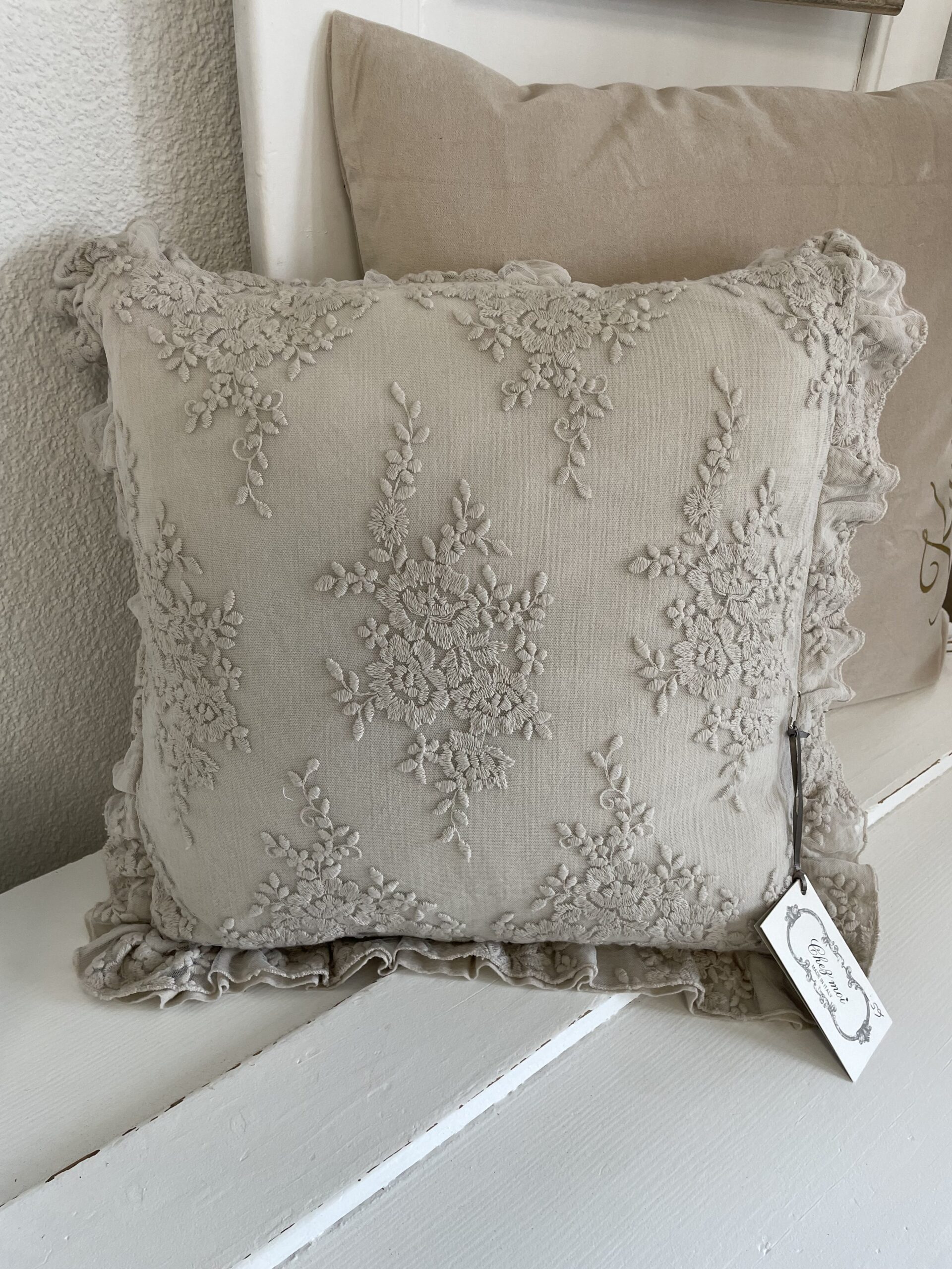 Rüschenkissen beige 40x40cm